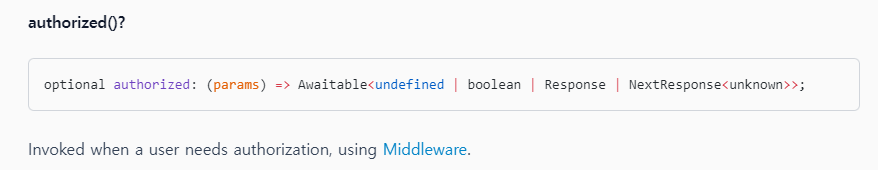 config설정의 callbacks를 통하여서 권한 확인할 수 있는데, 이중 authorized는 next.js의 middleware와 함께 사용해서